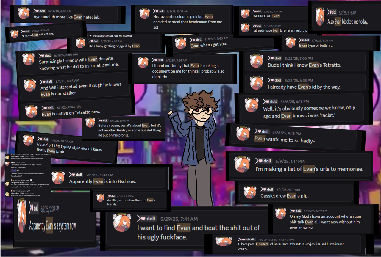 “Hi, I’m Evan. I just want to give a general disclaimer for my section as it is purely personal, not as serious as the other sections here I’m sure (but this whole thing has increased my paranoia in interacting with certain people), and I do not have a lot of screenshots (I’m retarded) but I will give what I can! I will give testimony that this dude is weird, a stalker, and was obsessed with me for a while if not still now.